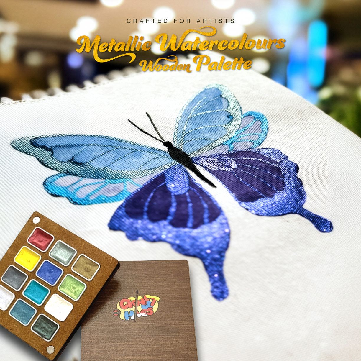The Crafthives Metallic Watercolors Compact Art Kit | 12 Shades Watercolor with Brush