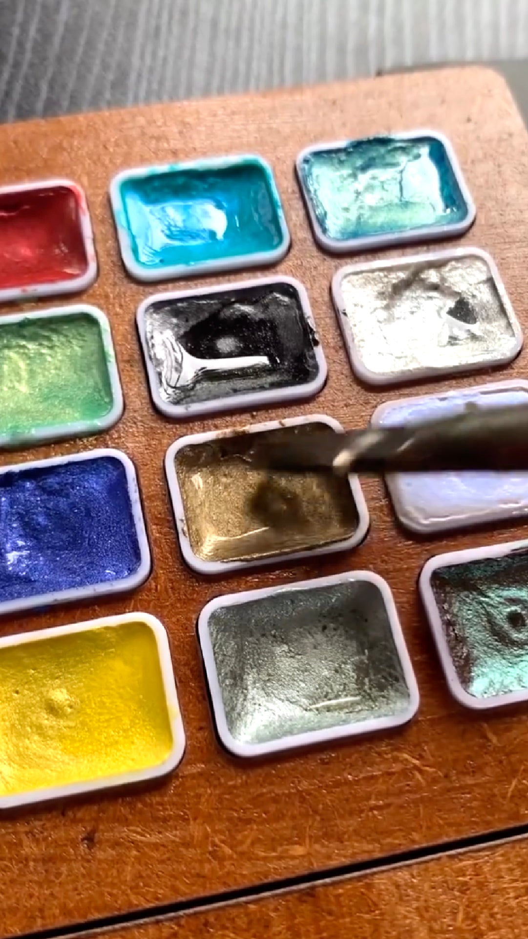 Vintage Metallic Shimmer Watercolor Set β 12 Solid Pans | Professional